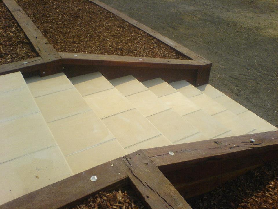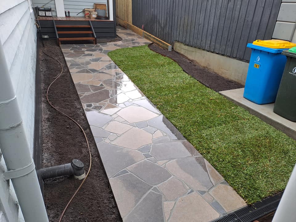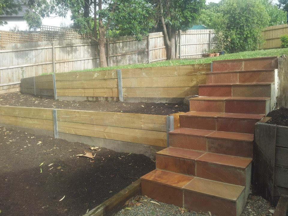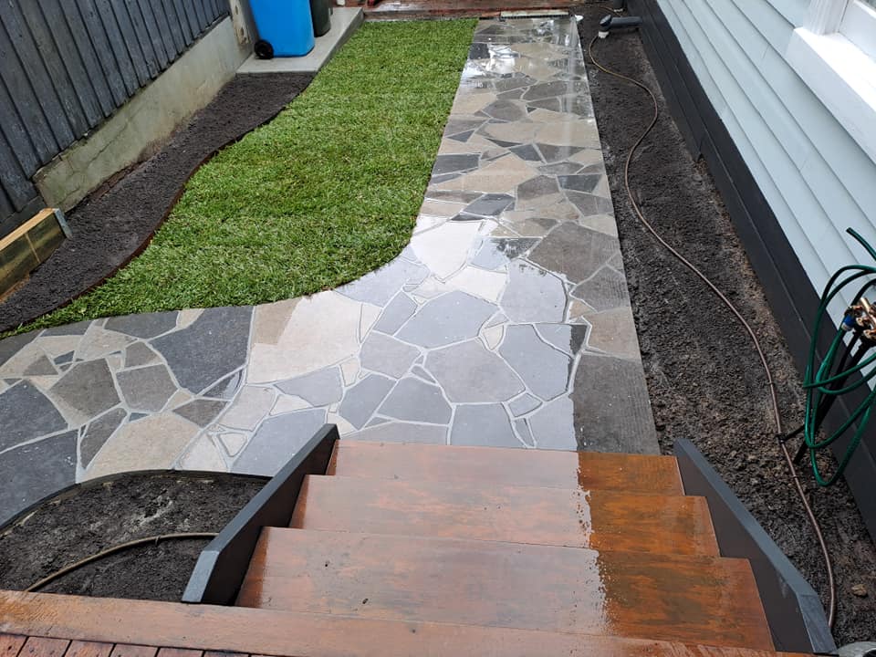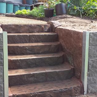 Steps can be crafted utilising a range of materials including timber, pavers, bricks, coloured concrete, or exposed aggregate, allowing for versatile and tailored design options to suit your landscaping preferences.