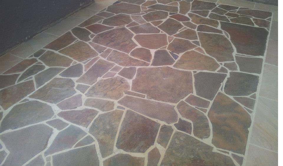 Irregularly shaped stone, known as crazy paving, offers a unique aesthetic for your outdoor spaces. This versatile option is well-suited for areas surrounding pools, balconies, pathways, and any flat surface, lending a distinctive appeal to your landscape design.
